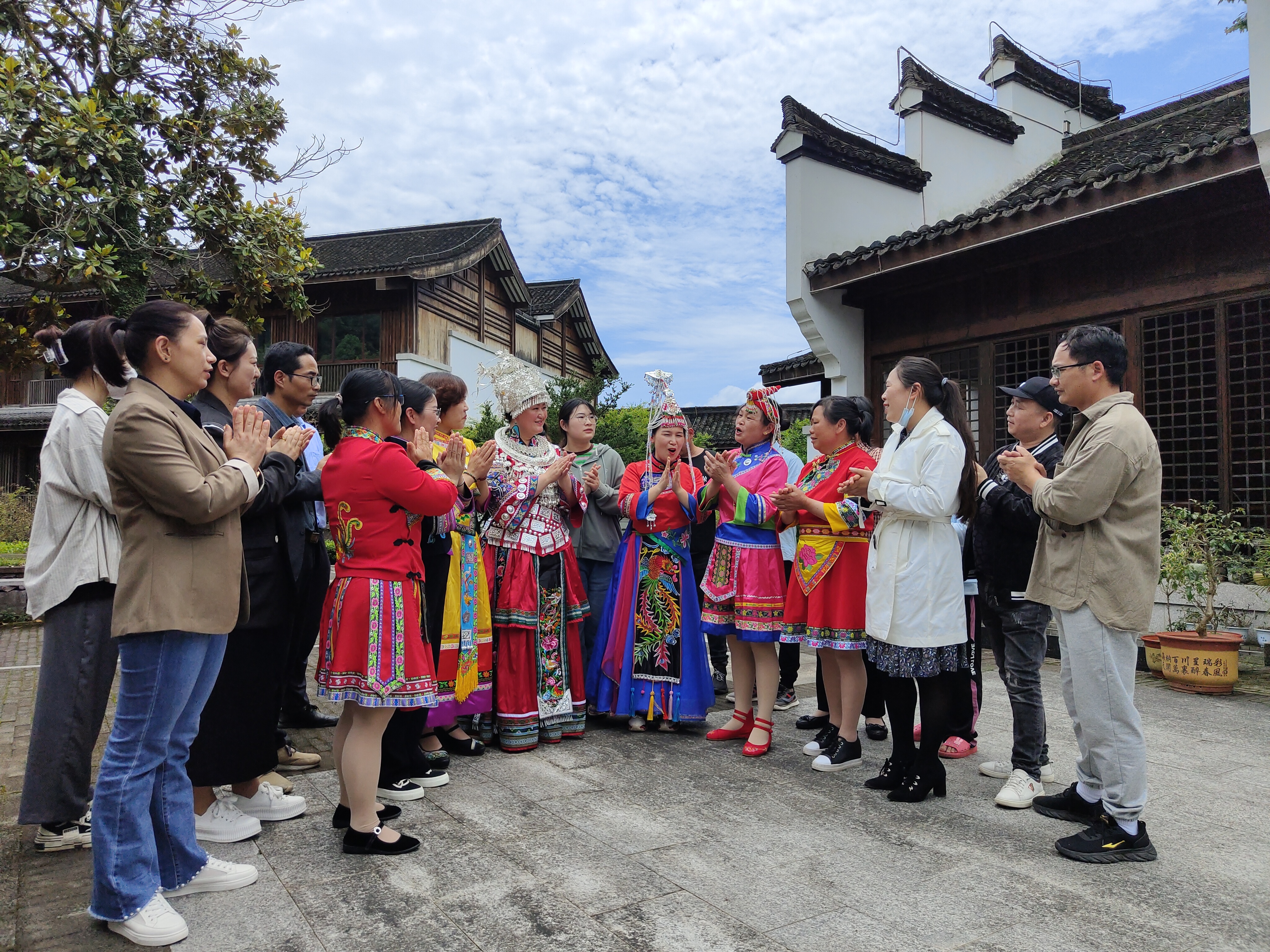 “彤云”妇委会与佛堂老街妇联联动,在位于千年古镇蒲川水街的巾帼共富工坊,专门设置产品展示区,并通过佛堂“十月十”民俗文化节、儿童友好“非遗文化体验”活动等文旅流量加持,以点及面形成服务“同心圆”,为云贵川等结对地区村社的妇女搭建非遗刺绣、民族服装饰品展销平台,在传递每一件商品背后传承特色文化的同时,亦累计帮扶金额50余万元。与义乌高校妇联联动,以“识一座城市、富一方乡村”为目标,为来自四川巴中等对口协作的民族班学生设立勤工俭学点,手把手“传帮带”女大学生创就业,回乡带动更多女性创业致富。2022年,妇委会主任张莉带头,还组建了“彤云石榴红”巾帼宣讲团,进山区进村社,讲好中华民族团结“好故事”。